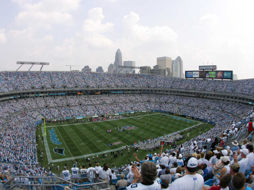 Downtown Charlotte, NC as seen from Bank of America Stadium during the game a Carolina Panthers-Atlanta Falcons game, September 2006. Streeter Lecka/Getty Images hide caption