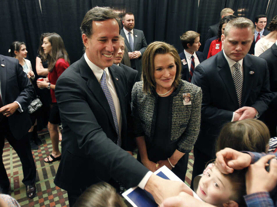 The action was in Wisconsin Tuesday night, but Rick Santorum and his wife, Karen, had already moved on to his home state of Pennsylvania. They greeted supporters at an election night rally in Mars.