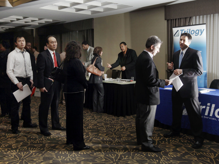 Job seekers in Boston in February, 2012. Elise Amendola/AP hide caption