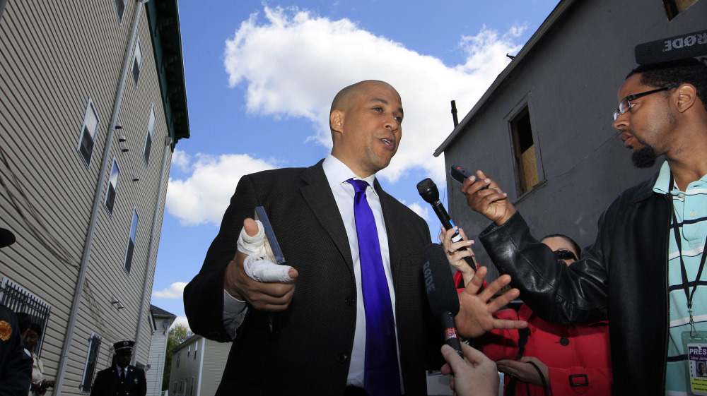 Newark Mayor Cory Booker said he did what anyone would do in rescuing a neighbor Thursday night from a fire at her home. Mel Evans/AP hide caption