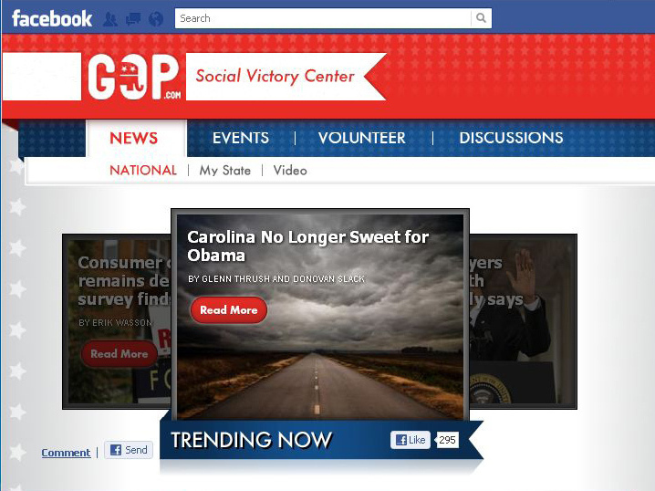 And Republicans are fighting back with a new Facebook app called the "Social Victory Center." (You have to be a Facebook user to access the site.)