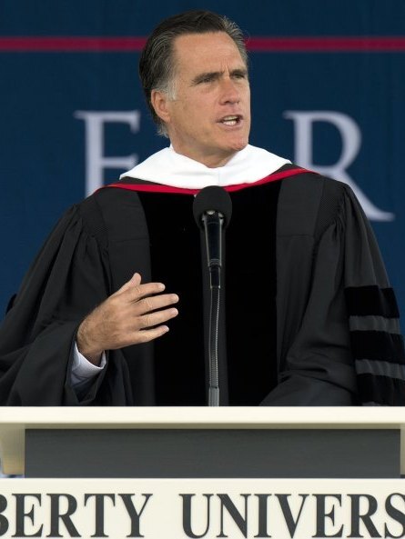 Republican presidential hopeful Mitt Romney speaks to graduates Saturday at Liberty University in Lynchburg, Va.