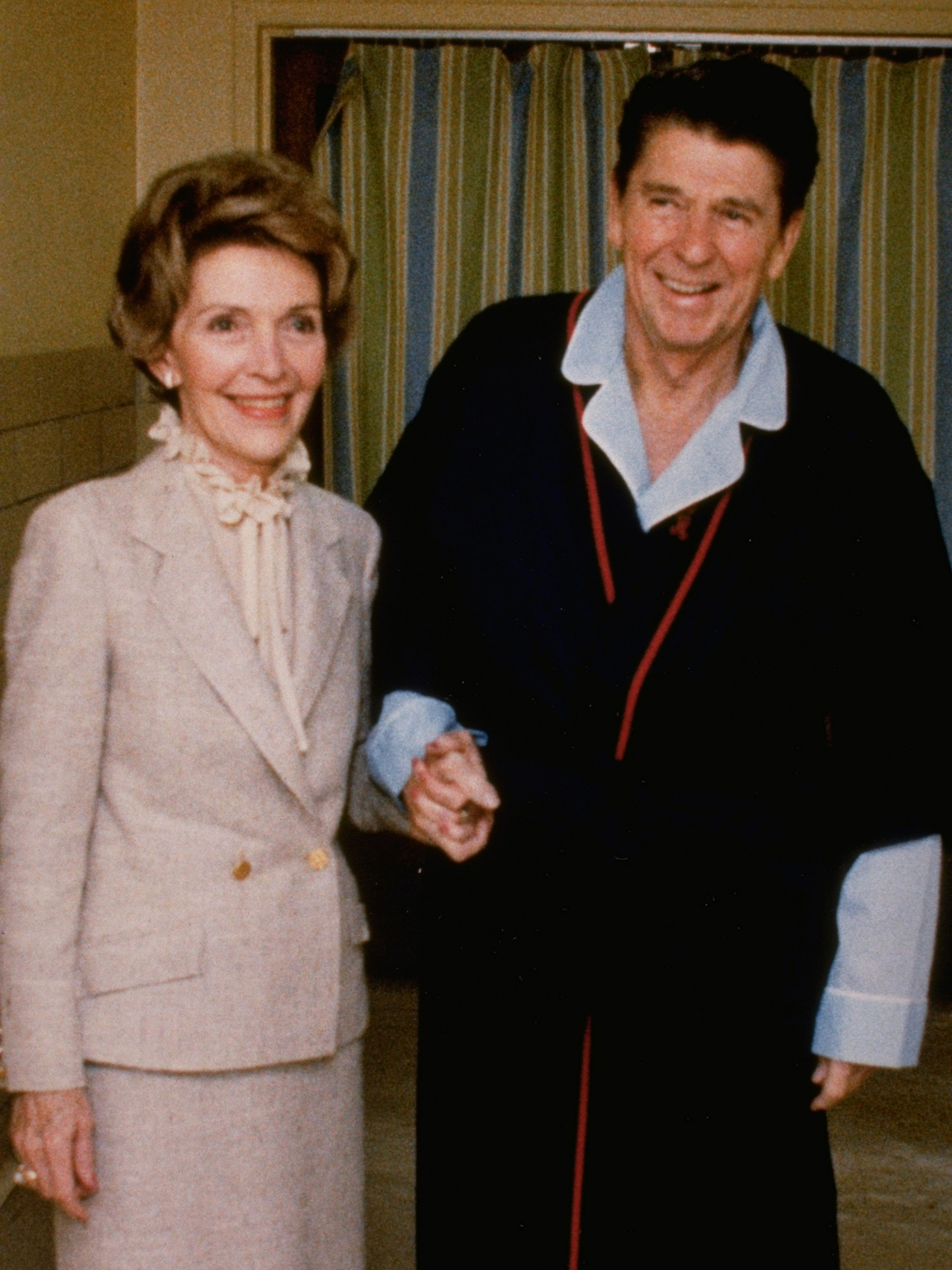 The Reagans at the George Washington University Medical Center today, April 3, 1981.