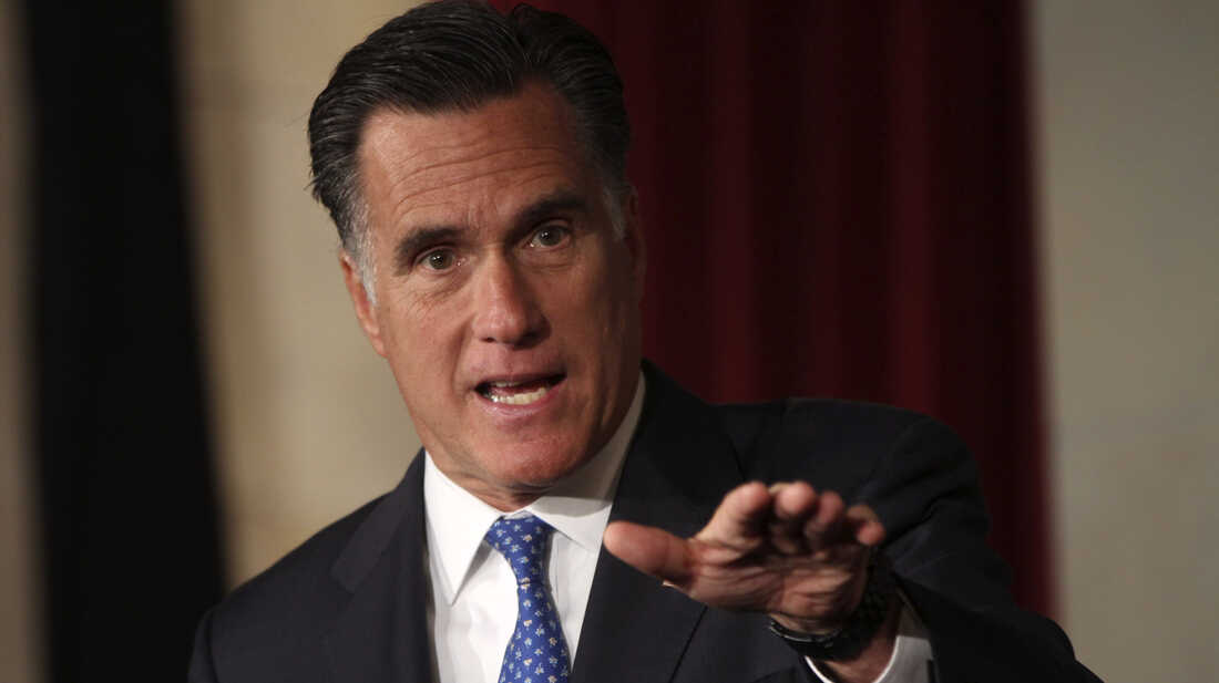 Mitt Romney addresses the Latino Coalition's 2012 Small Business Summit in Washington earlier this month. Mary Altaffer/AP hide caption