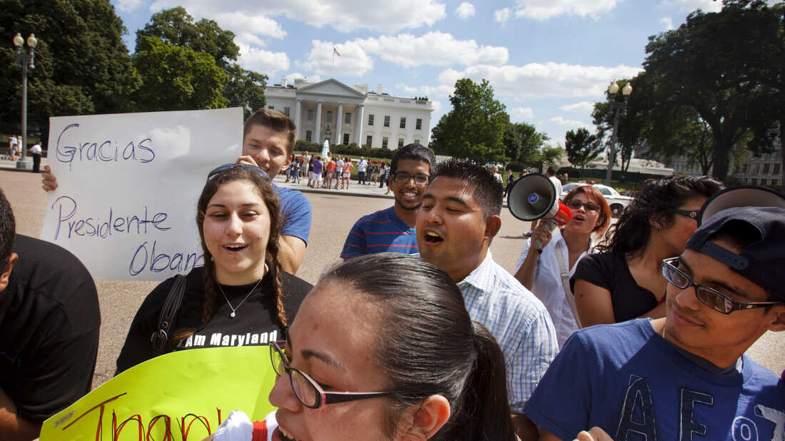 Supporters of President Obama's announcement on immigration policy rally outside the White House Friday.