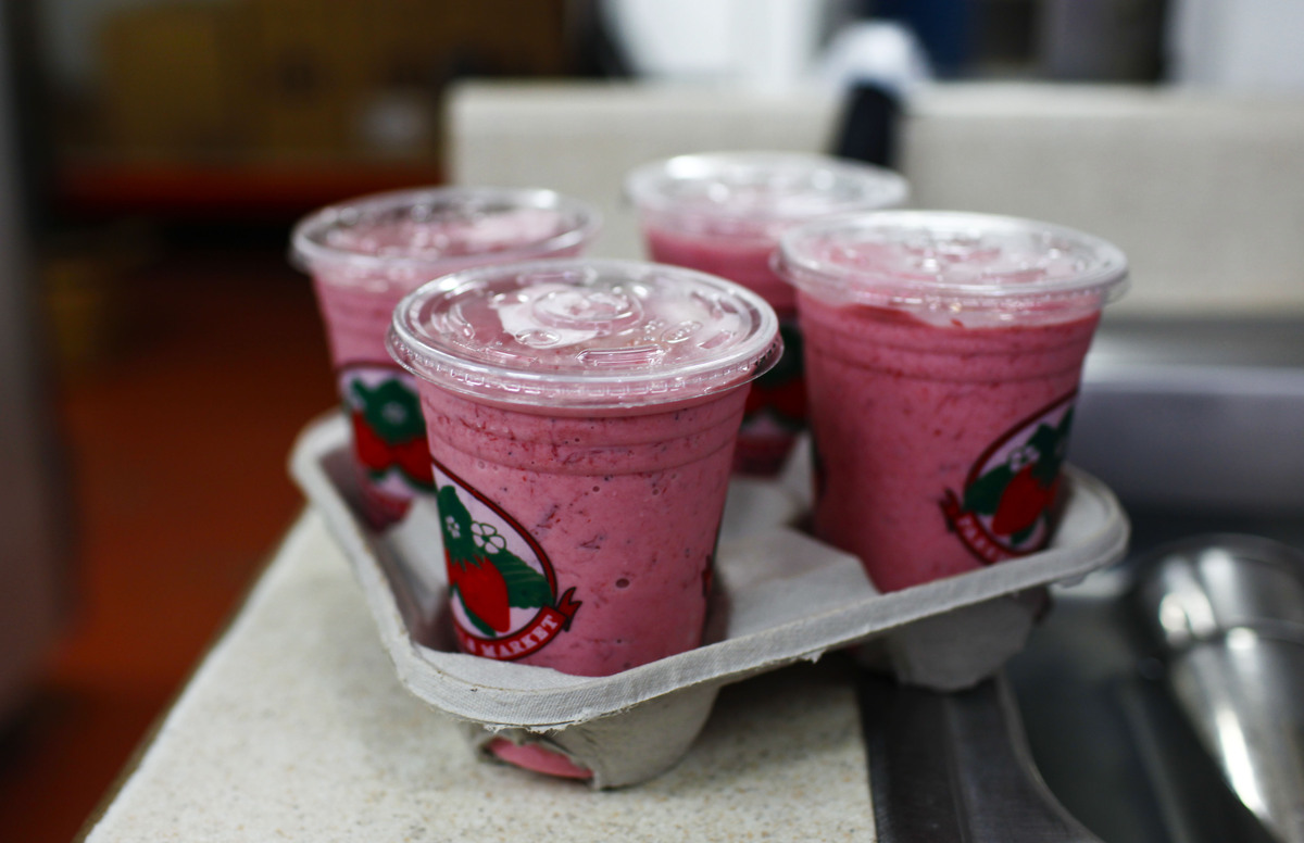The strawberry milkshakes at the Parkesdale Farm Market in Plant City, Fla., hold a special allure for presidential candidates. Jim Meeks, the market's owner, says whoever drinks one will win the election. Becky Lettenberger/NPR hide caption