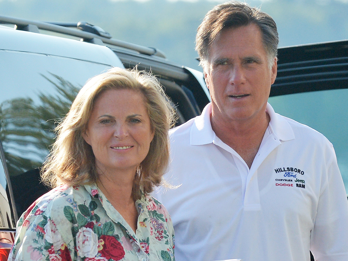 Mitt Romney, who this week is set to accept the Republican presidential nomination, with wife Ann on Sunday in Wolfeboro, N.H. Jewel Samad /AFP/Getty Images hide caption
