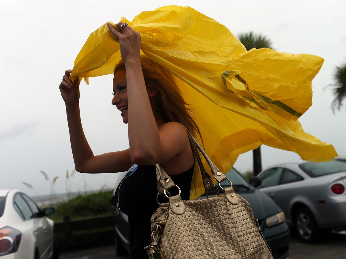 Republican Rachel Bolch Thach held tight to her poncho Sunday in Tampa.