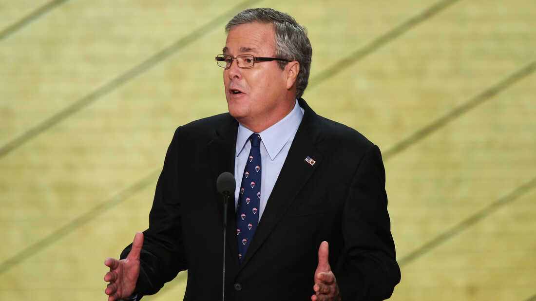 Former Florida Gov. Jeb Bush speaks Thursday at the Republican National Convention. Mark Wilson/Getty Images hide caption