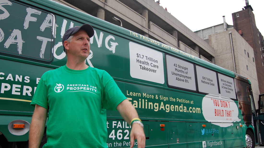 Alan Greenblatt/NPRBut Americans for Prosperity is also trying a retail approach. The group is currently on a tour of more than 350 stops in 16 states, seeking to approach and energize citizens individually to turn out to vote.