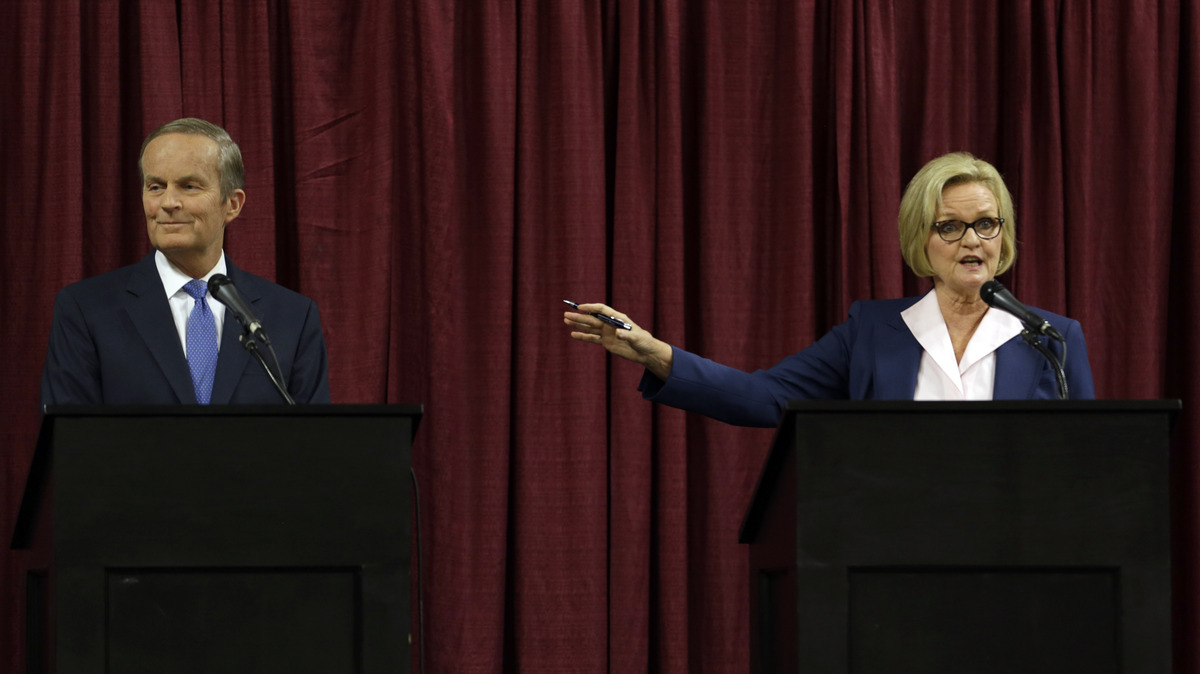That's where Democratic Sen. Claire McCaskill — once one of the party's most vulnerable incumbents — is now leading in the polls and debated her GOP opponent, Rep. Todd Akin, a Tea Party conservative, as well as third-party Libertarian candidate Jonathan Dine.