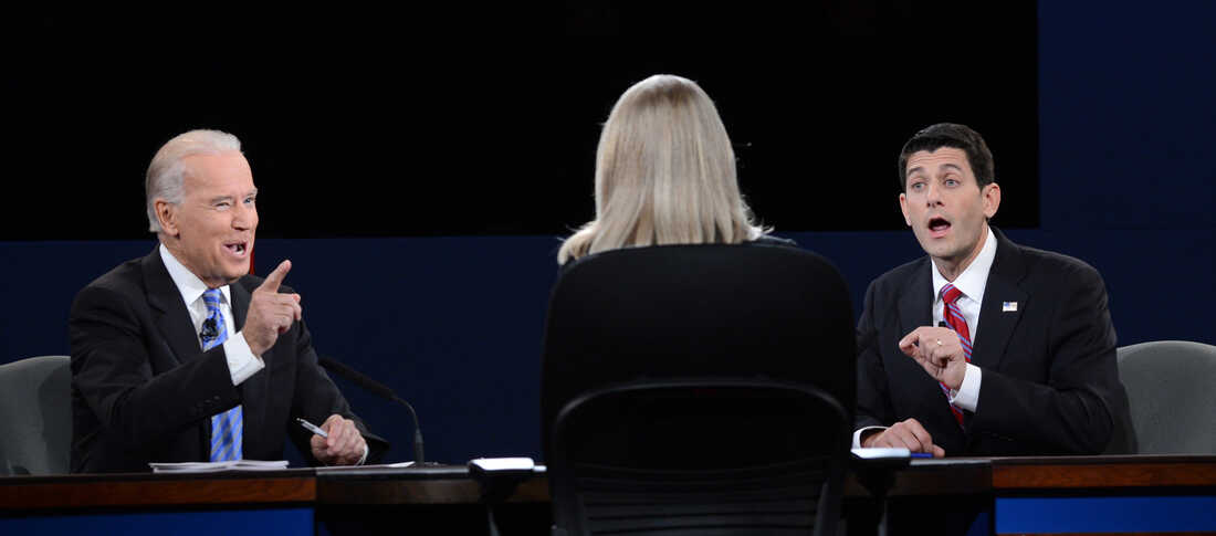 Vice President Biden and Republican Paul Ryan debate Thursday, with Martha Raddatz moderating. Saul Loeb/AFP/Getty Images hide caption