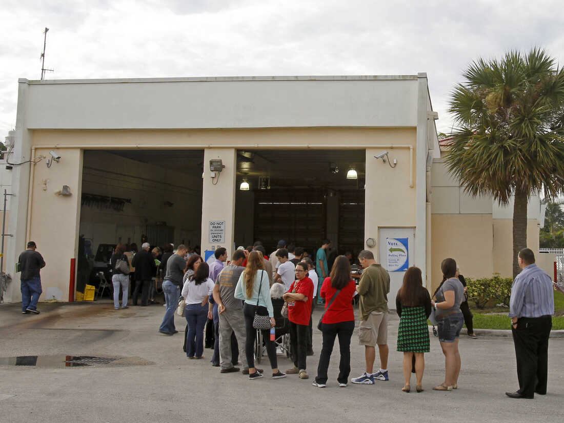 Voters stand in line as they prepare to cast their votes in Hialeah, Fla., on Tuesday.