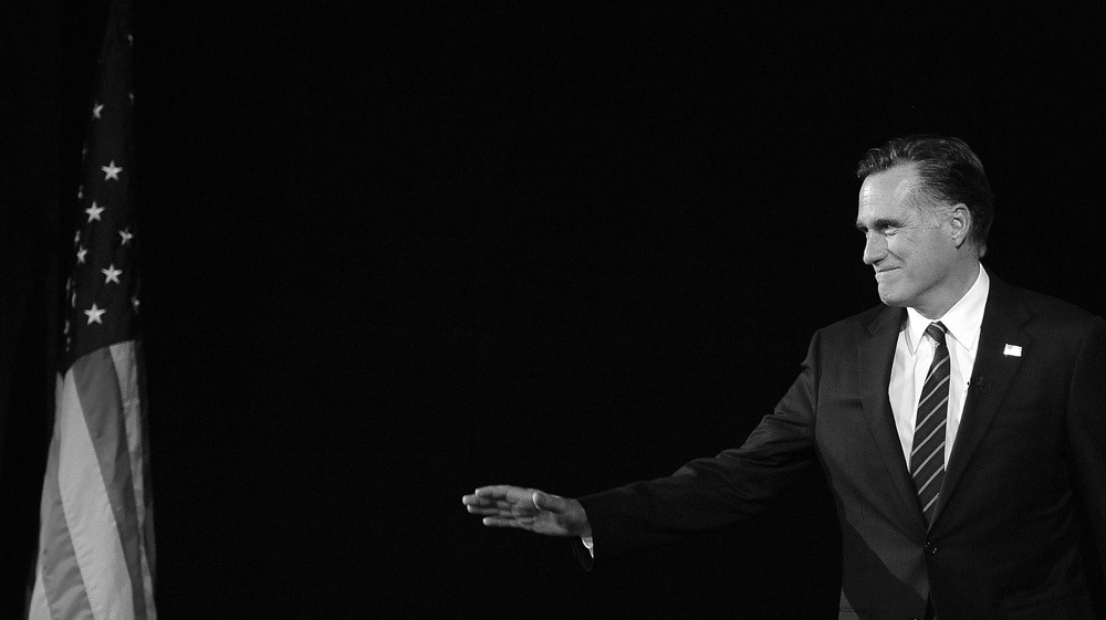 Republican presidential candidate Mitt Romney arrives onstage early Wednesday morning in Boston, moments before conceding defeat in the 2012 presidential election. Emmanuel Dunand/AFP/Getty Images hide caption
