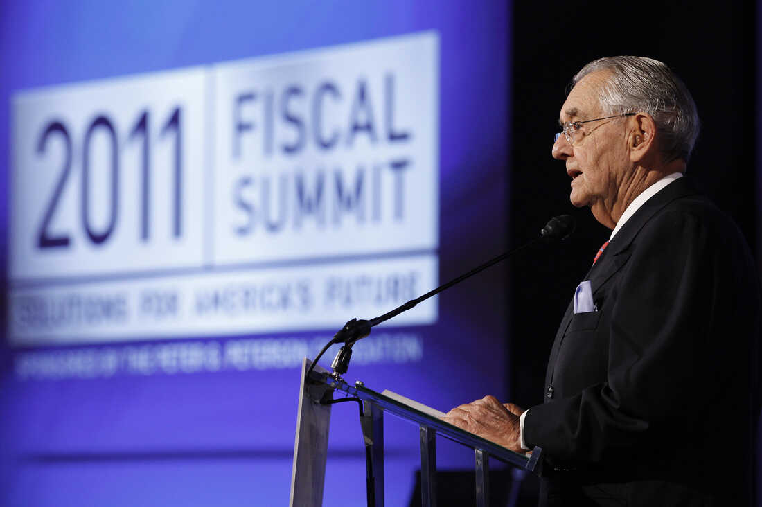 Peter G. Peterson speaks at the Fiscal Summit in Washington, D.C., last year. The event was sponsored by the Peter G. Peterson Foundation. Jason Reed/Reuters/Landov hide caption