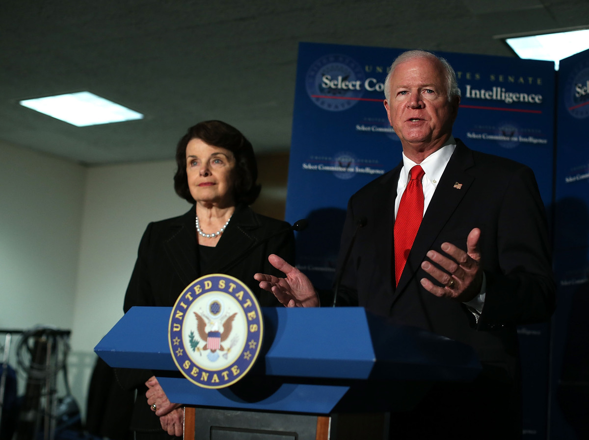 Sen. Dianne Feinstein, D-Calif., and Sen. Saxby Chambliss, R-Ga., have opposing views about a report detailing CIA detention and interrogation practices. Alex Wong/Getty Images hide caption