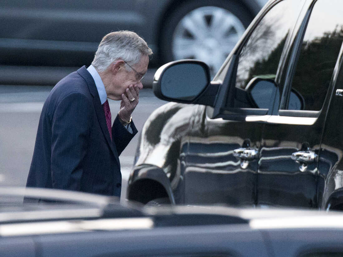 Senate Majority Leader Harry Reid of Nevada leaves the White House after a closed-door meeting with the president and congressional leaders. Evan Vucci/AP hide caption