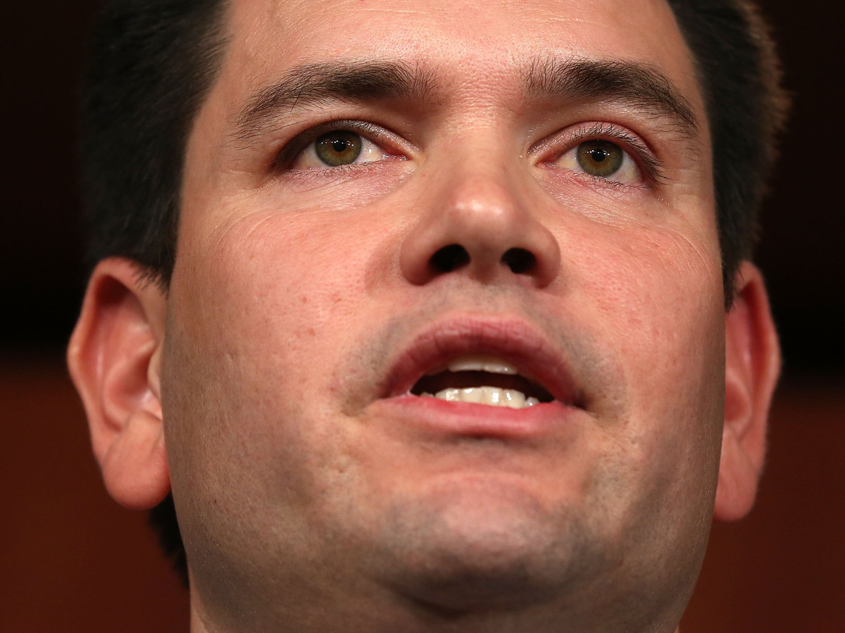 Sen. Marco Rubio, R-Fla., speaks Monday in Washington at a news conference announcing a bipartisan plan to overhaul the nation's immigration laws. Alex Wong/Getty Images hide caption