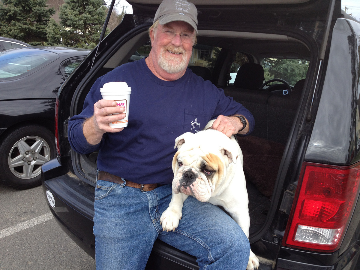 On Thursday morning, Mike Cragin stopped by the Dunkin' Donuts in Newtown with his bulldog, Truman.