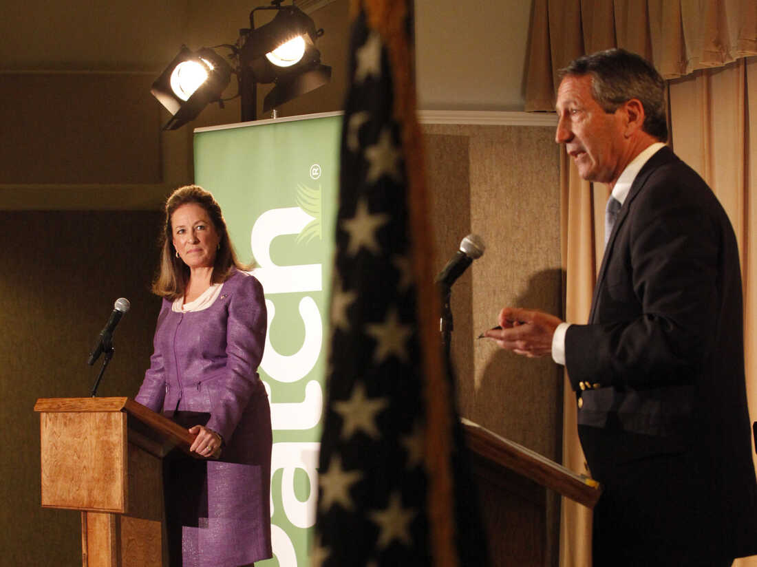 Democrat Elizabeth Colbert Busch and her Republican opponent, former South Carolina Gov. Mark Sanford, debate in Charleston, S.C., on April 29.