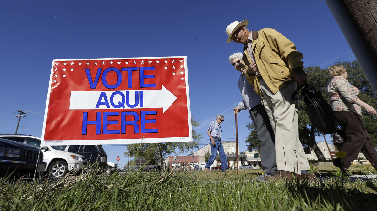 Voters leave the Old Blanco Courthouse in Blanco, Texas, after casting their ballots in November 2012. Democrats hope demographics and a new organizational push give them a brighter future in Texas.