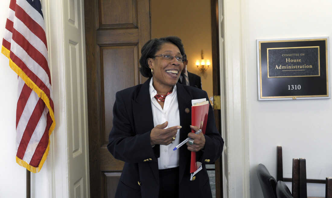Rep. Marcia Fudge, D-Ohio, chair of the Congressional Black Caucus, says her group fears an immigration overhaul that greatly expands high-tech visas could have an adverse impact on blacks aspiring to such jobs. Susan Walsh/AP hide caption
