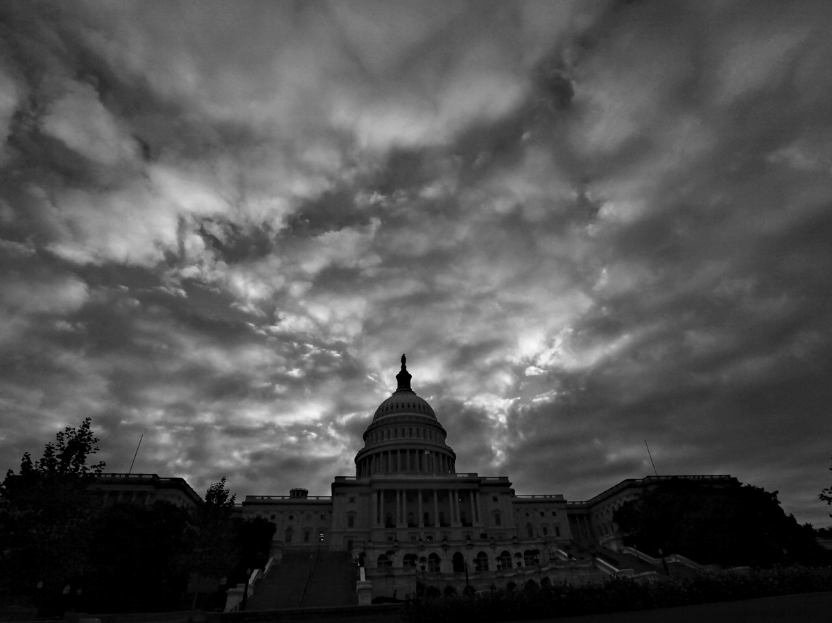 Cloudy skies shroud the Capitol on Monday. Congress is at an impasse as Democrats and Republicans remain at odds over the crises gripping the nation.