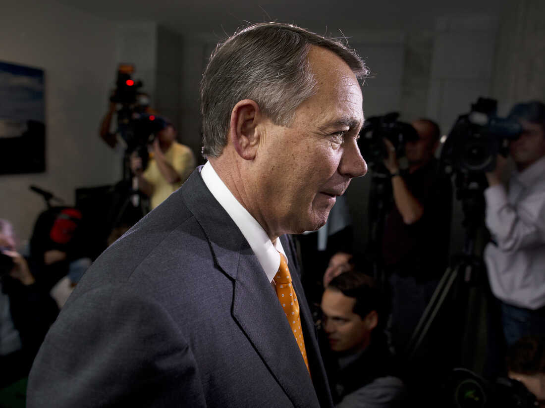 With the shutdown-debt ceiling fight over, Speaker John Boehner, R-Ohio, appeared to strengthen his hand within the House GOP caucus but weaken it outside that group. Evan Vucci/AP hide caption