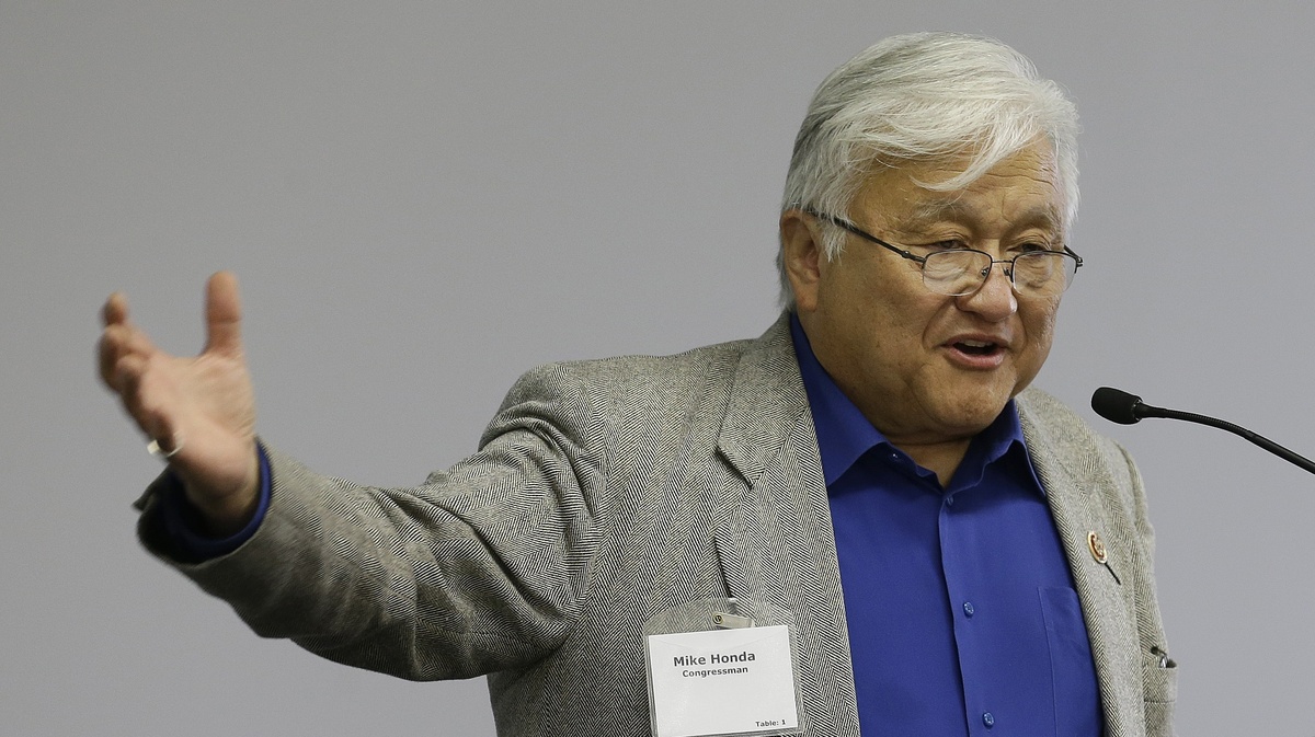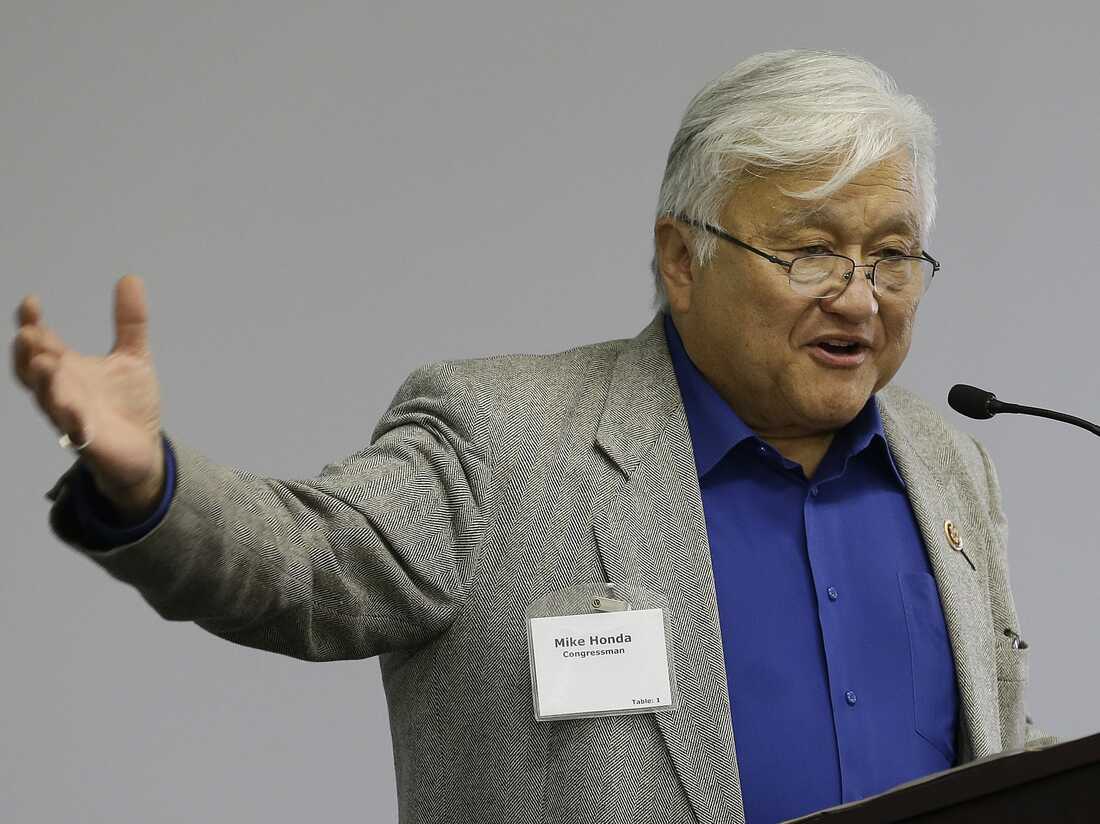 Rep. Mike Honda speaks during the Fremont Legislative Brunch at Tesla Motors in California in May. Jeff Chiu/AP hide caption