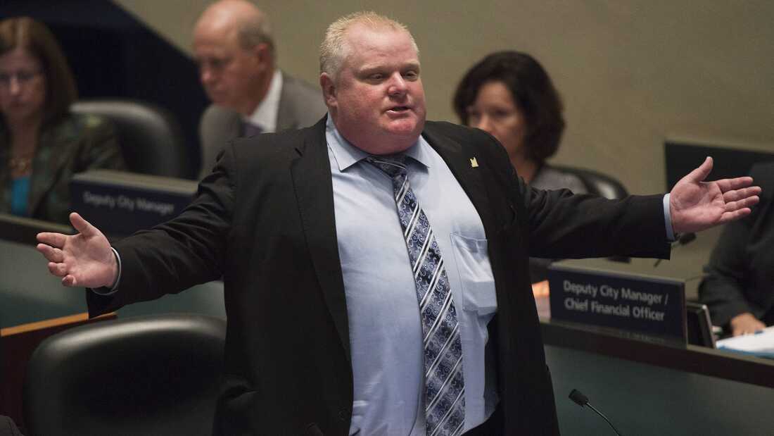 Mayor Rob Ford talks during a City Council debate in Toronto on Nov. 13. Nathan Denette/AP hide caption