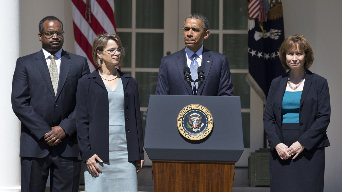 On June 4, President Obama announces the nominations (from left) of Robert Wilkins, Cornelia Pillard and Patricia Ann Millet to the U.S. Court of Appeals for the District of Columbia Circuit. In the past three weeks, Senate Republicans have blocked confirmation votes on all three.