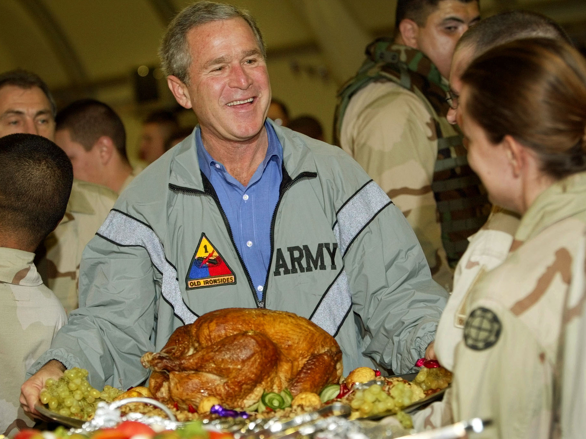 President George W. Bush went beyond the usual Thanksgiving proclamation and turkey pardon in 2003, making a surprise visit to Baghdad eight months after the start of the Iraq war.