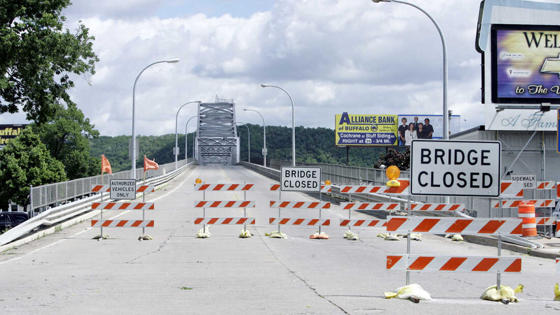 In this June 2008 photo, the bridge spanning the Mississippi River between Winona, Minn., and the Wisconsin side of the river is closed to traffic.