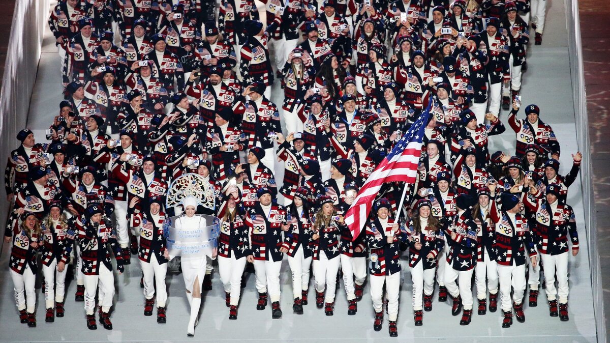 Team USA enters the stadium during the Opening Ceremony of the Sochi 2014 Olympic Games in Russia.