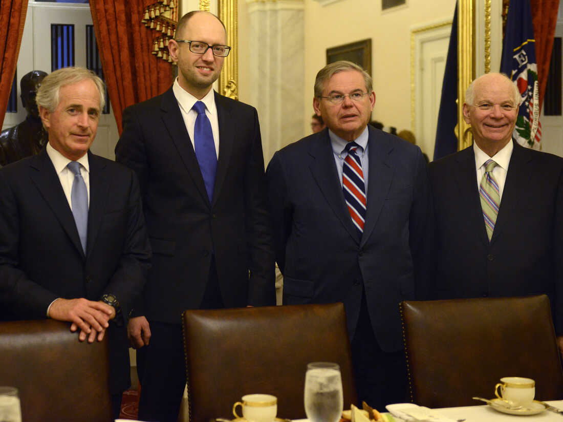 Sen. Bob Corker, R-Tenn. (from left), Ukraine's Prime Minister Arseniy Yatsenyuk and Sens. Robert Menendez, D-N.J., and Ben Cardin, D-Md., met on Capitol Hill on Wednesday.