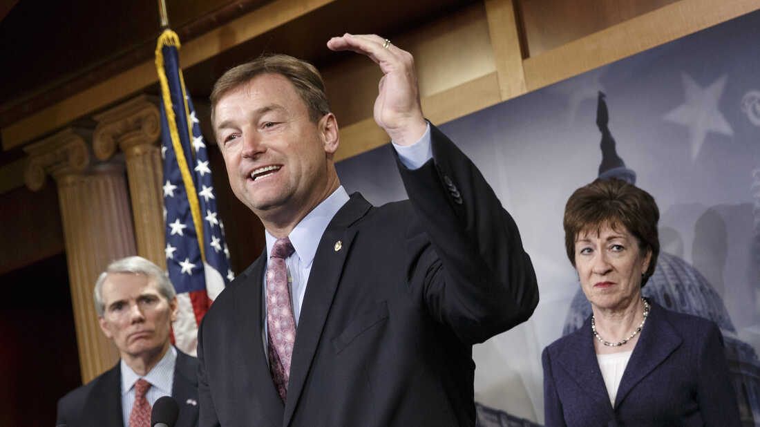 Republican senators Rob Portman (left), Dean Heller and Susan Collins worked with a bipartisan group to reach a deal to extend long-term jobless benefits for five months. J. Scott Applewhite/AP hide caption