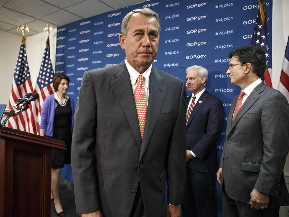 House Speaker John Boehner of Ohio, with (from left) Rep. Cathy McMorris Rodgers, R-Wash., Rep. Bradley Byrne, R-Ala., and House Majority Leader Eric Cantor of Va., at a March 25 Capitol Hill news conference. J. Scott Applewhite/AP hide caption