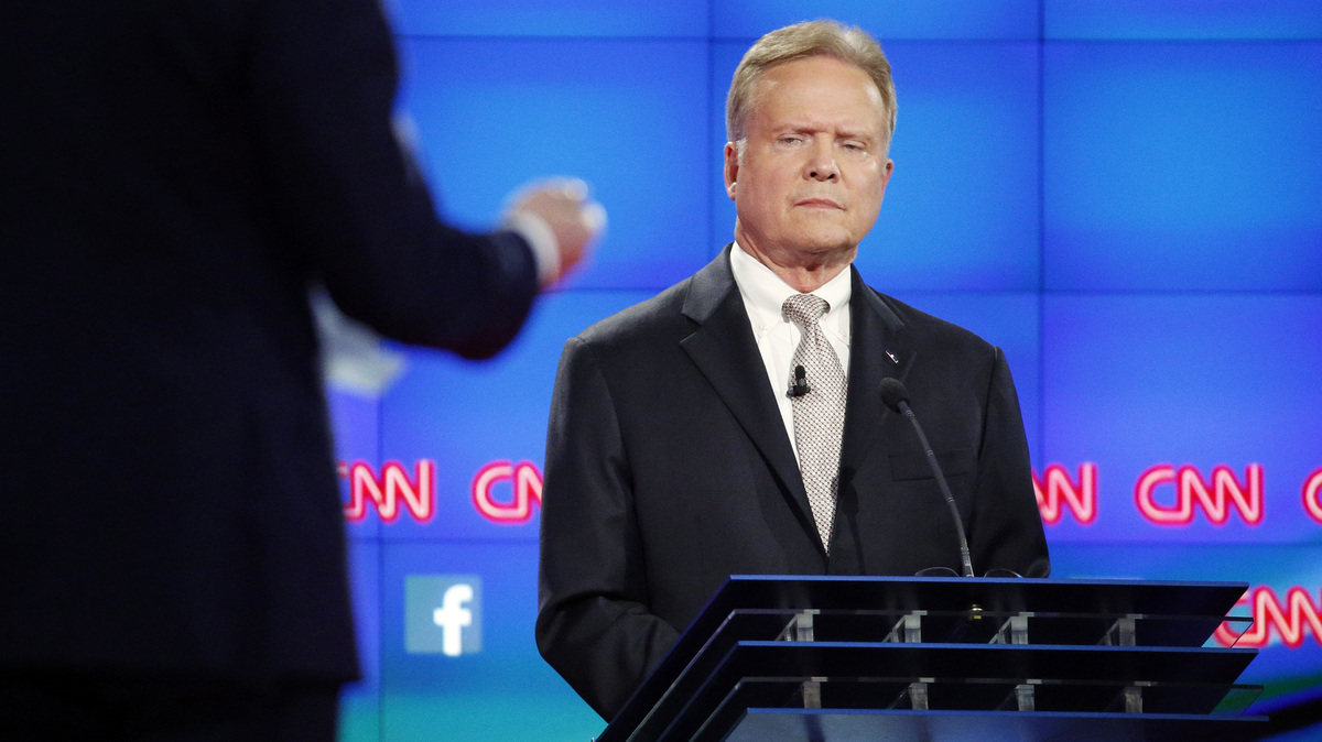 Democratic presidential candidate and former Virginia Sen. Jim Webb listens during the CNN Democratic presidential debate in Las Vegas on Oct. 13. John Locher/AP hide caption