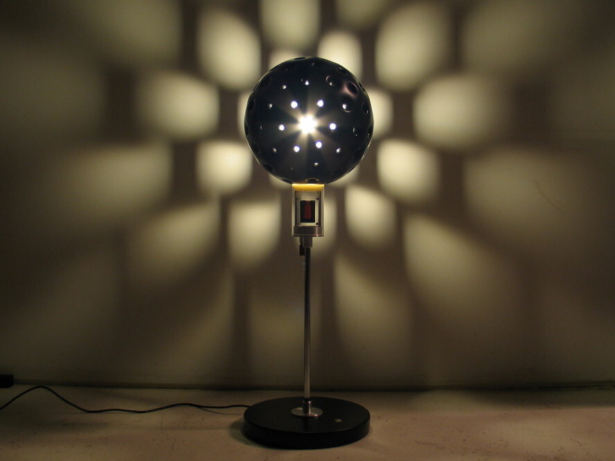 A lamp shade robot, an Auger-Loizeau Carnivorous Domestic Robot Entertainment design, is powered by incoming flies.