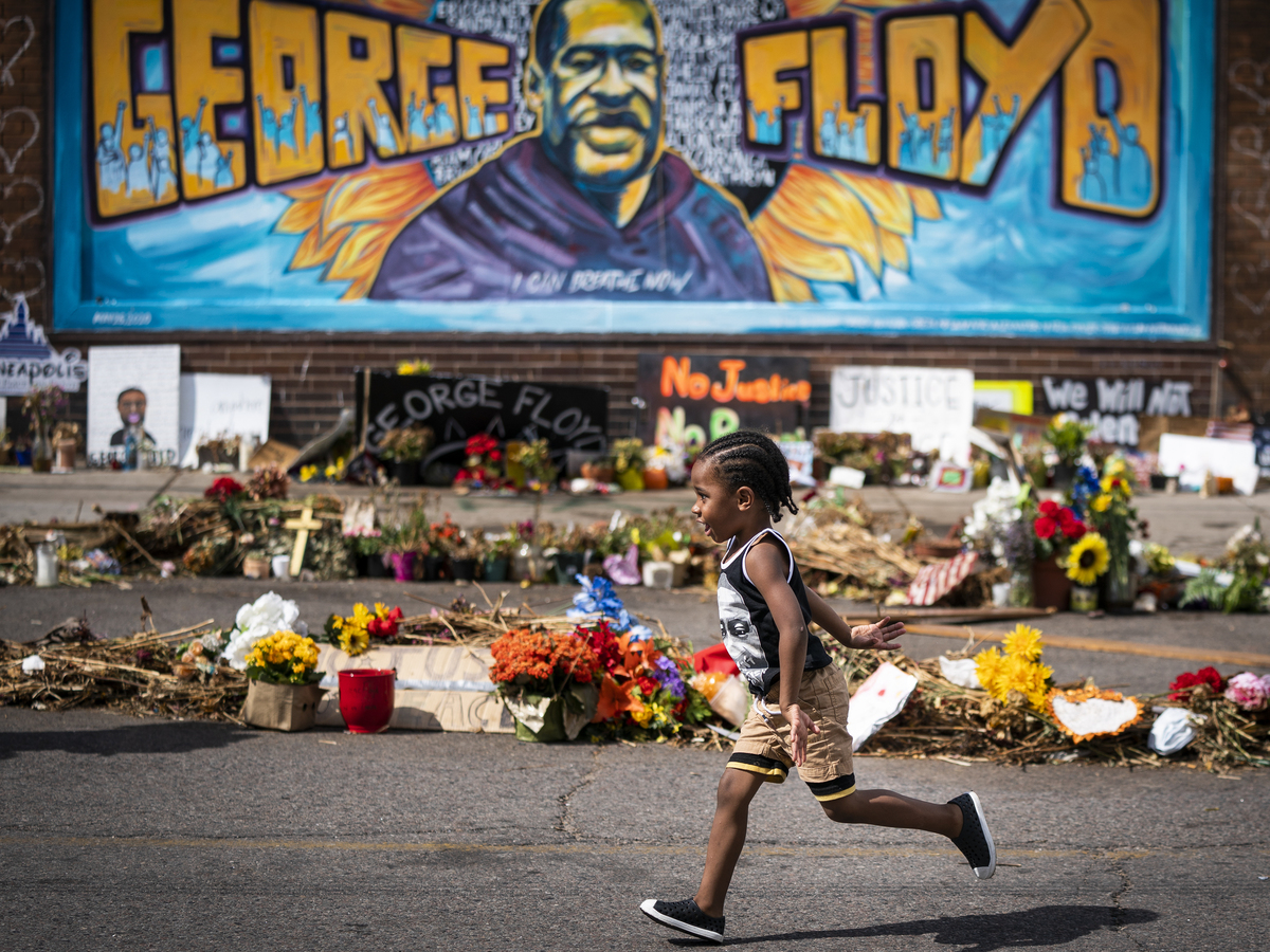 The Minnesota Legislature has approved a bill to revise rules on police use of force in response to the killing of George Floyd. Here, a boy runs past a mural at a memorial to Floyd outside Cup Foods.