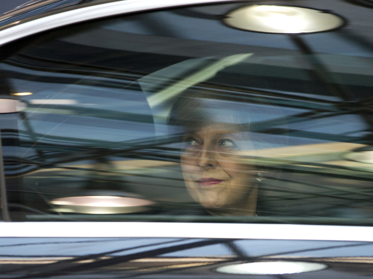 British Prime Minister Theresa May, looks out from her car window as she arrives for an EU Summit in Brussels on Thursday, Dec. 15, 2016.