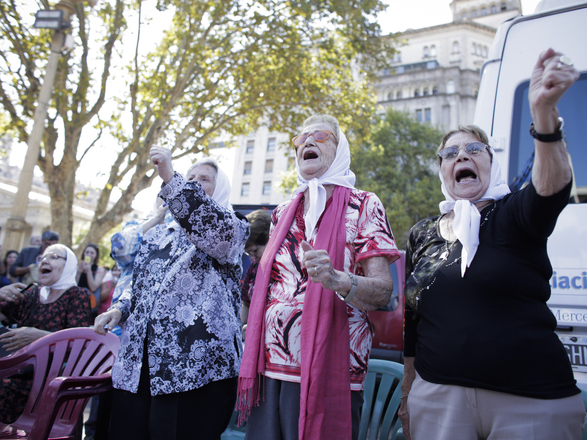 Members of the Mothers of Plaza de Mayo human rights group demand information about missing relatives during their traditional Thursday march in Buenos Aires on March 3. The women began demonstrating in 1977.
