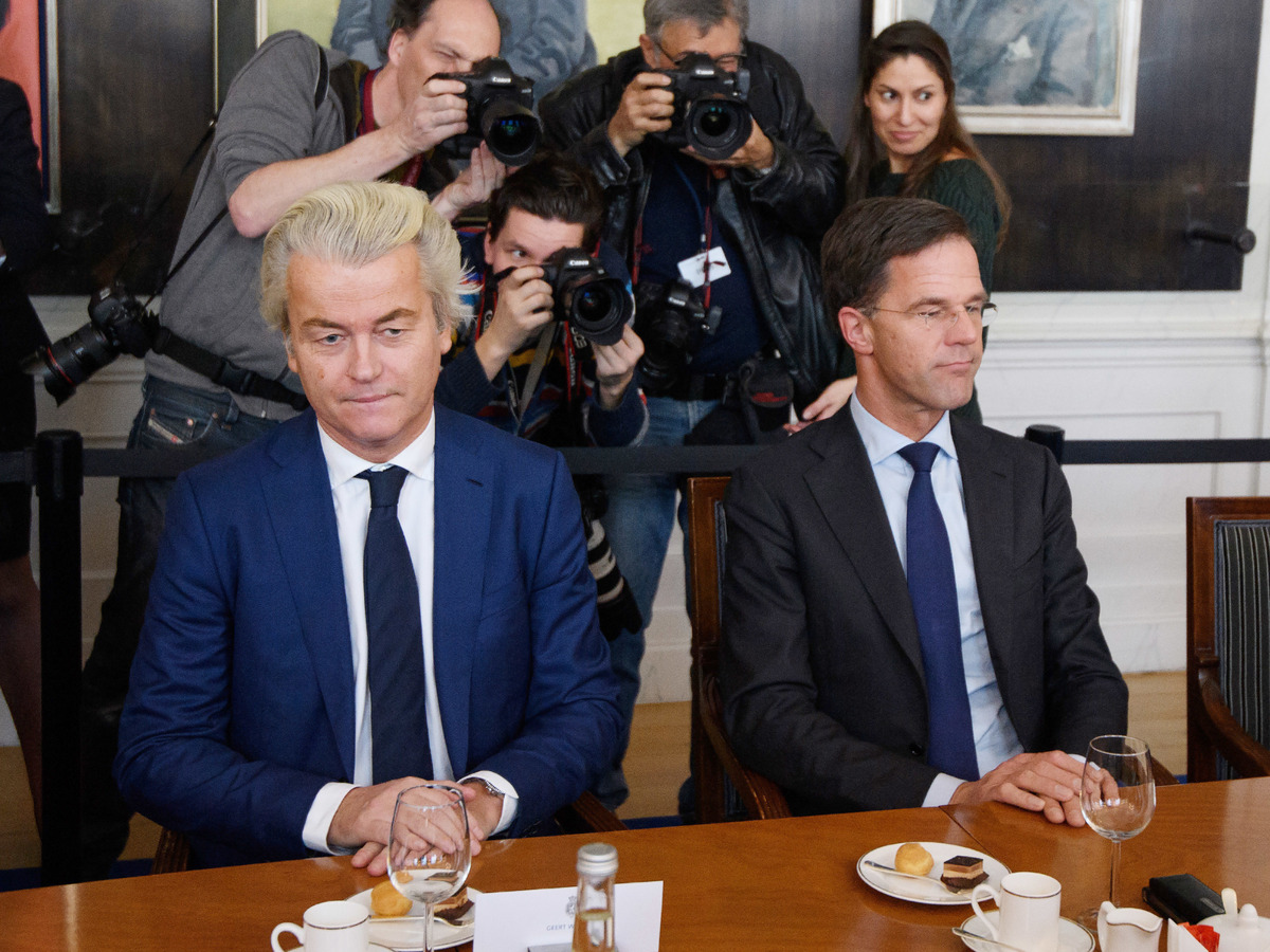 Dutch Prime Minister Mark Rutte (right) and Freedom Party leader Geert Wilders meet Thursday at the House of Representatives to discuss the formation of the cabinet in The Hague. Many Dutch parties have said they won't work with Wilders' Party of Freedom.