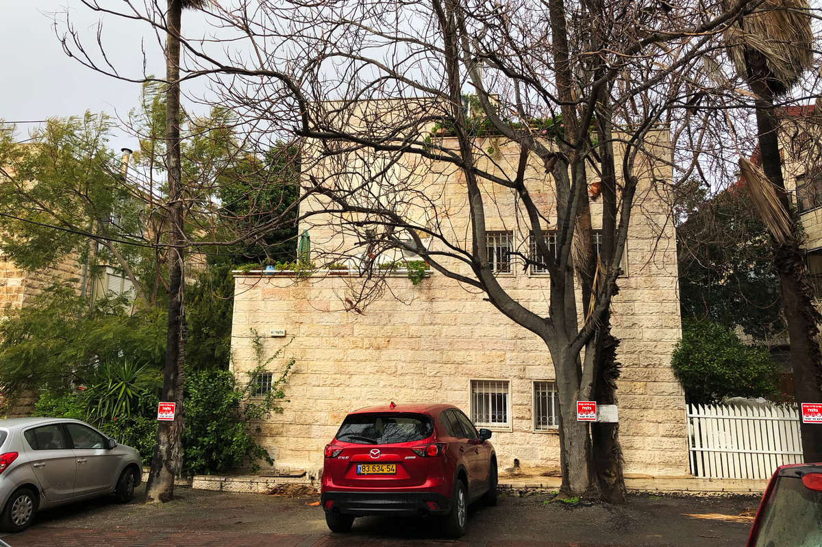 This apartment building, a short walk from the new U.S. Embassy in Jerusalem, is emblematic of Israelis' love-hate relationship with the city. On the ground floor, a religious Jewish Israeli man has moved in with his family. One floor up, a secular Jewish Israeli woman has moved out. Daniel Estrin/NPR hide caption