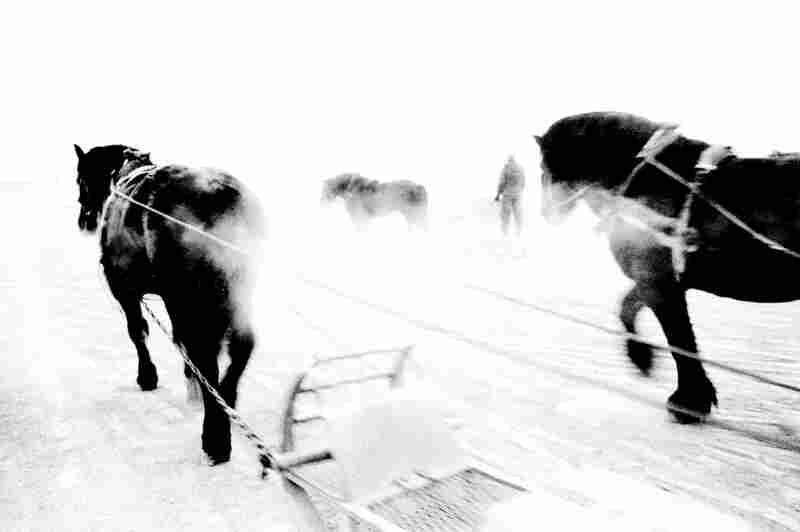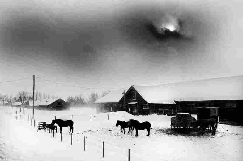 Contrast can refer to the balance of dark and white tones, or it can refer to a mode of storytelling (to compare and contrast). Here, Kimura weaves a narrative that aptly balances both forms, having a nearly sublime balance. Through highly contrasted black-and-white images, we are confronted with equal doses of nostalgia and peril, with sleigh rides and with the slaughterhouse.