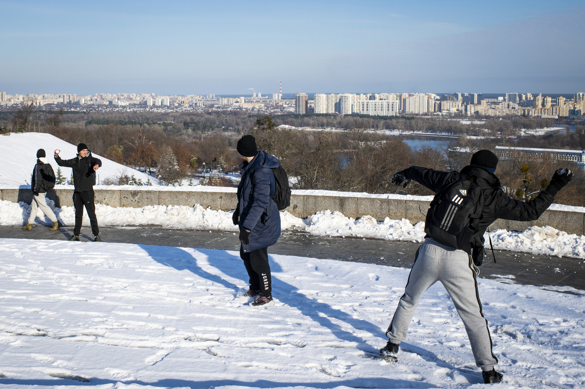 Young Ukrainians take part in a snowball fight in the Park of Eternal Glory in Kyiv on Dec. 1.