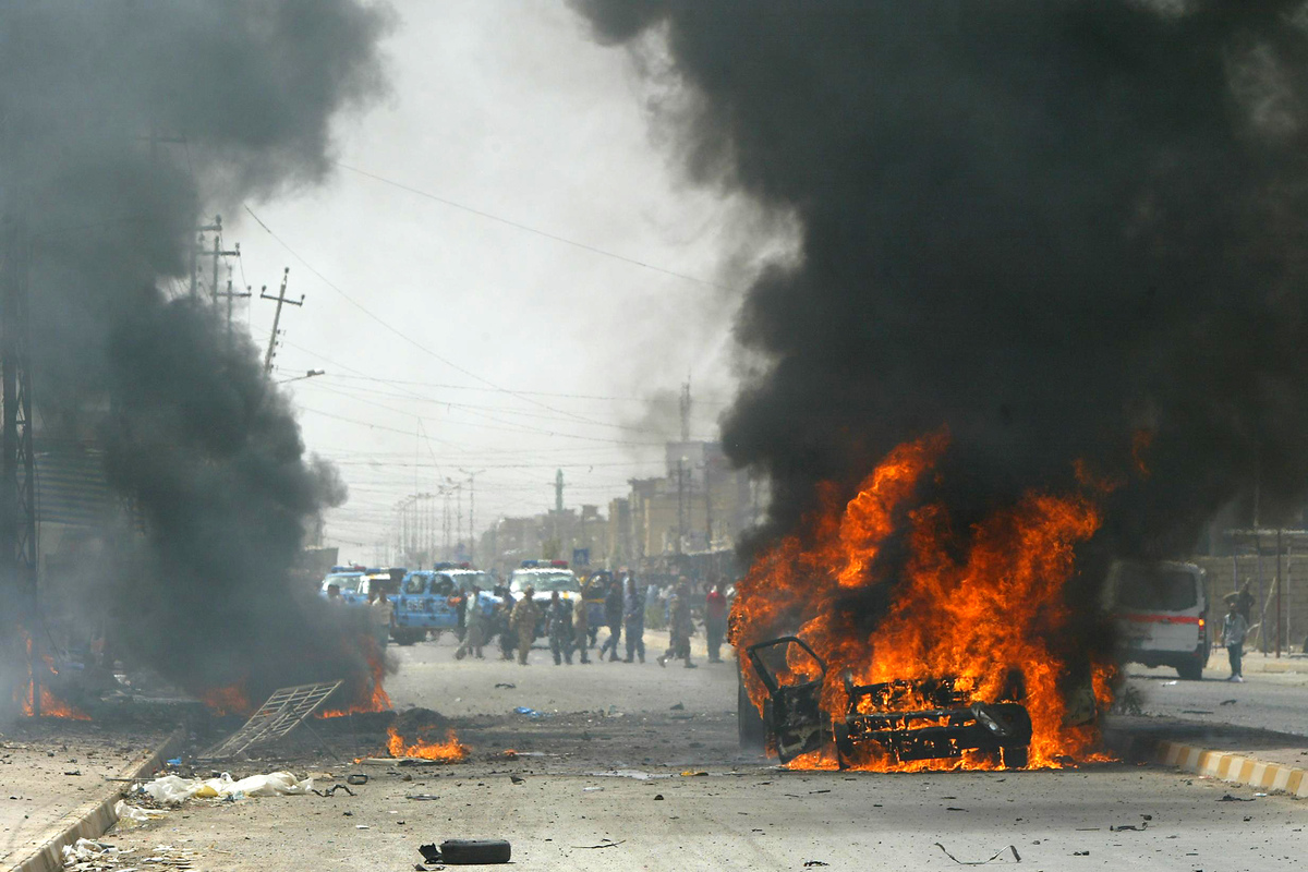 July 23, 2010: Smoke billows from a burning car in the northern Iraqi city of Kirkuk following a blast that seriously wounded the city's police chief, Borhan Habib Tayeb, and killed his son. Marwan Ibrahim/AFP via Getty Images hide caption