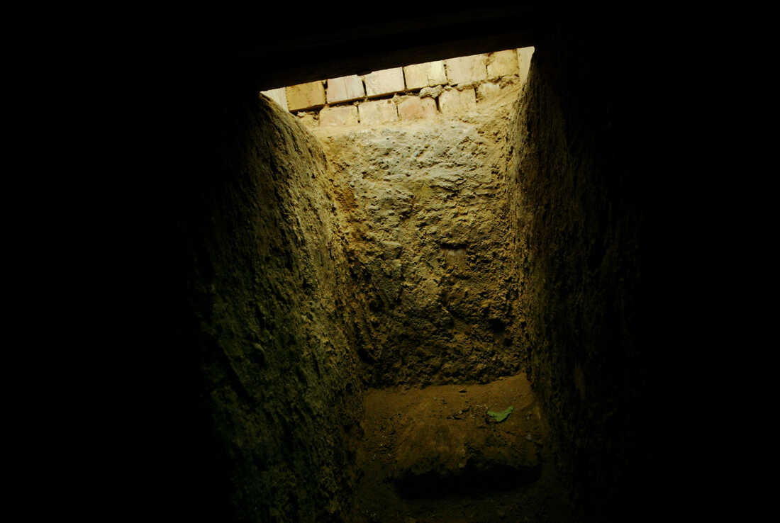 Dec. 15, 2003: The entrance to the "spider hole" where Saddam Hussein was hiding when he was captured is seen from inside the space in Ad Dawr, Iraq. Iraq's notorious dictator was captured in a raid at the compound on Dec. 13. Chris Hondros/Getty Images hide caption