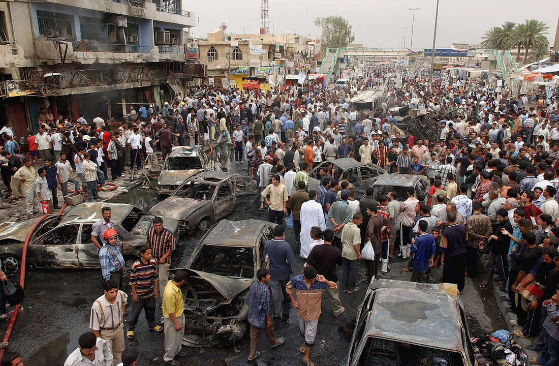 May 12, 2005: The scene of a car bombing in eastern Baghdad. The device exploded near a busy marketplace in a mainly Shia district. Wathiq Khuzaie/Getty Images hide caption