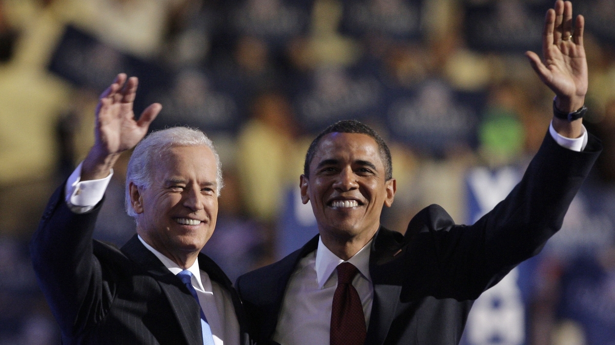 V ice President Joe Biden, left, and President Obama embrace following Biden's vice-presidential nomination acceptance speech at the Democratic National Convention in Denver, Wednesday, Aug. 27, 2008.
